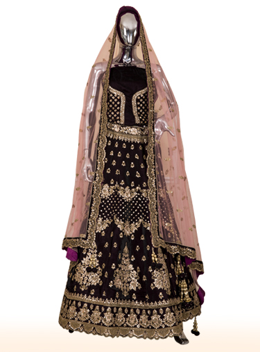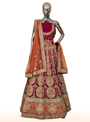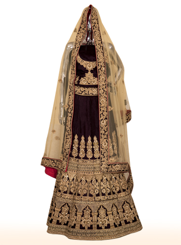 Wine velvet lehenga with richly