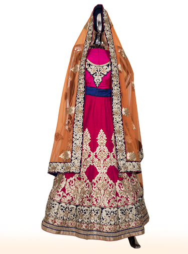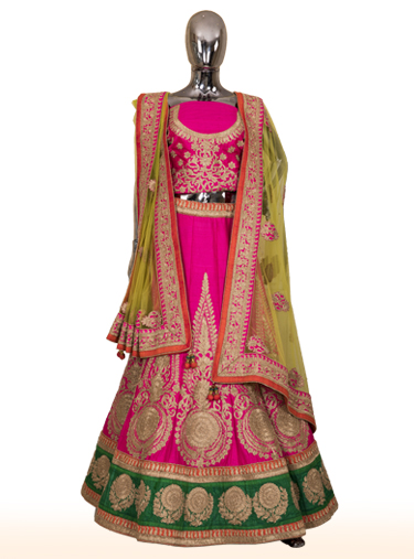 Fuchsia pink raw silk lehenga with