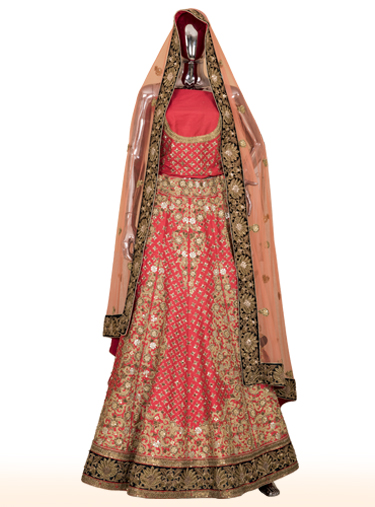 Strawberry raw silk lehenga with zari