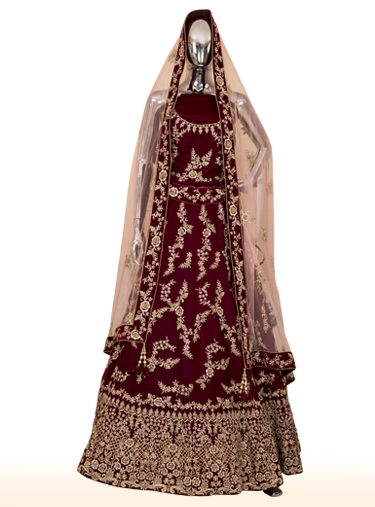 Wine velvet lehenga with attractive