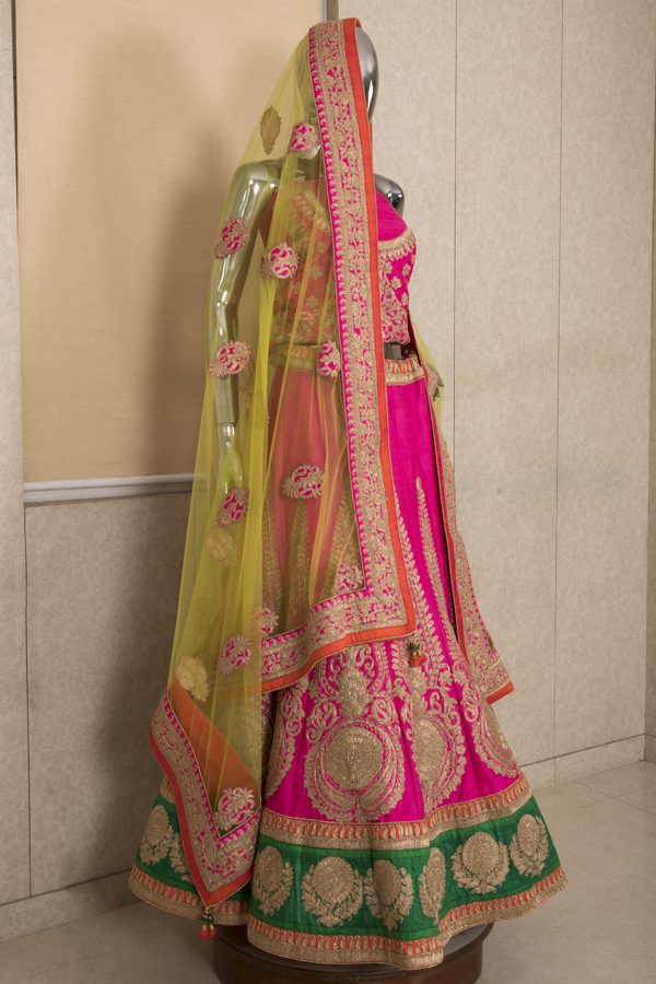 FUCHSIA PINK RAW SILK LEHENGA
