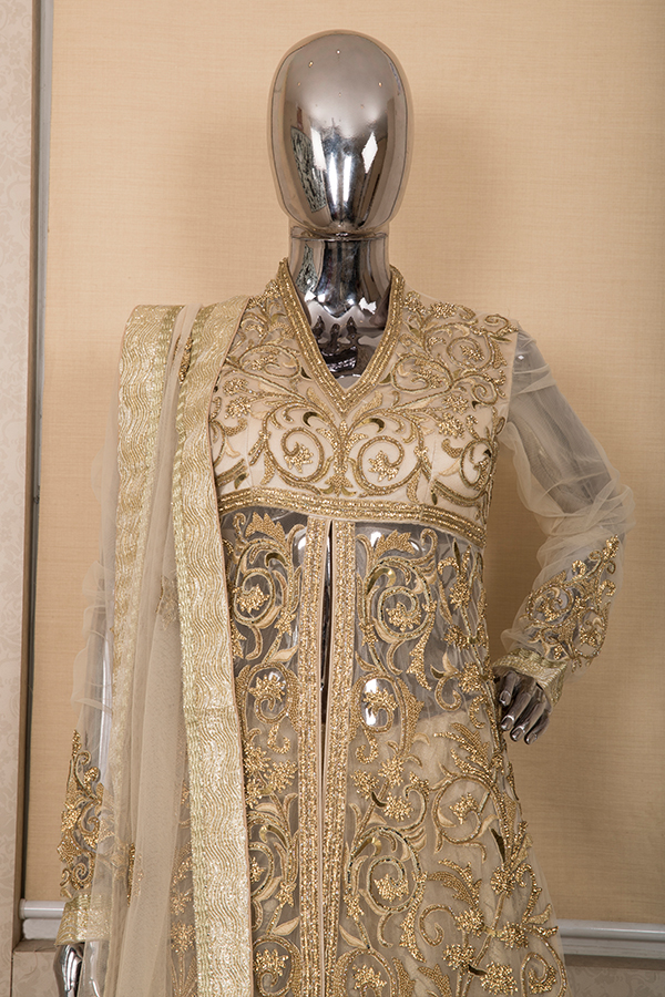 Golden zardozi long dress with skirt