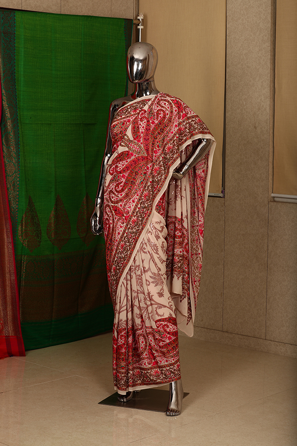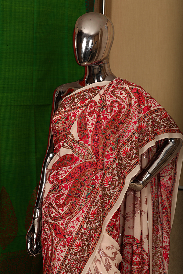 and ending at pallu of it. A beautiful imagination drawn on a saree.