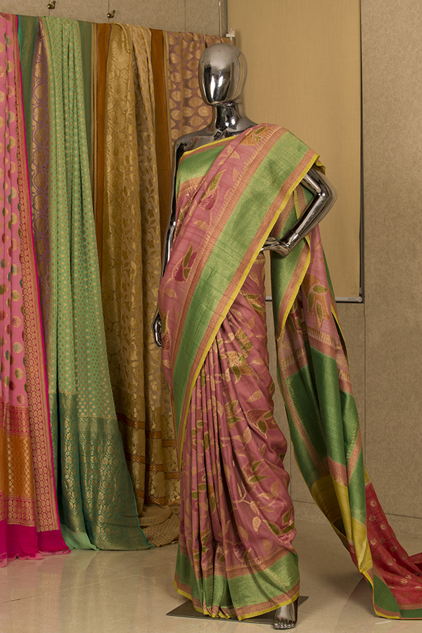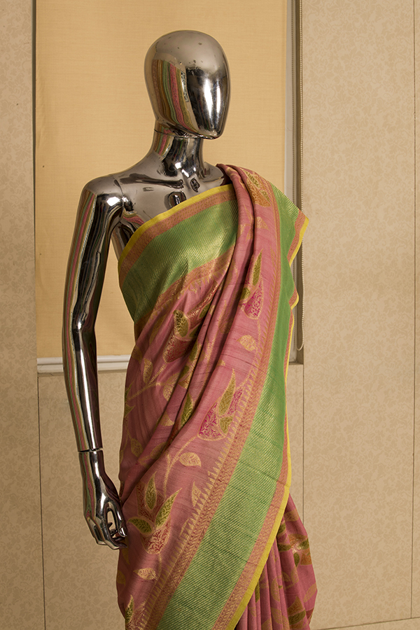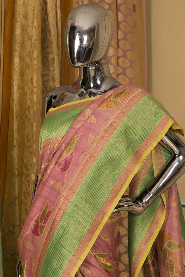A pure tussar georgette handloomed weaved saree with multi colored brush