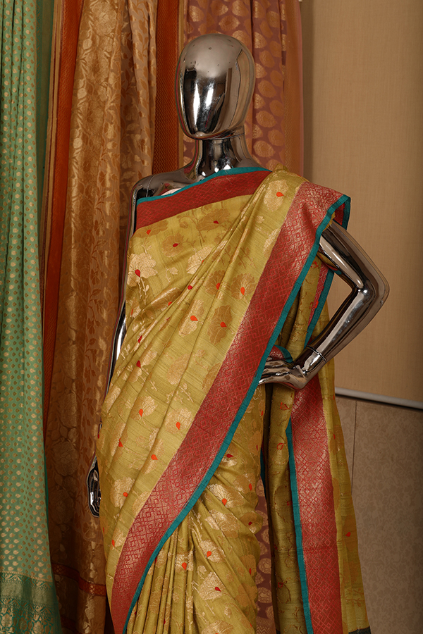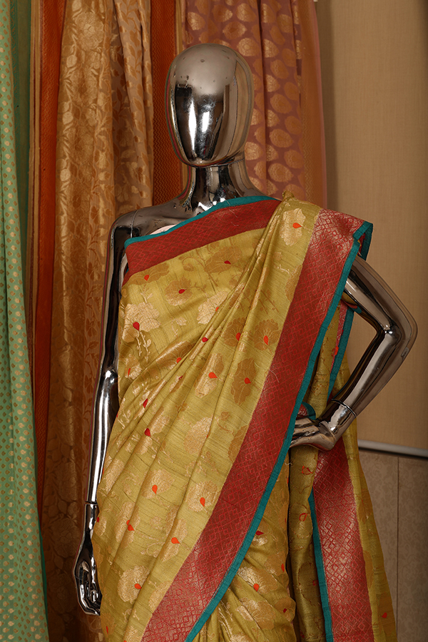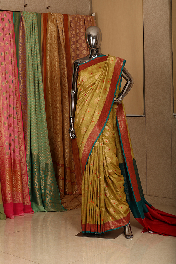 paint and maroon & thin blue border keeping the aesthetic of the saree.