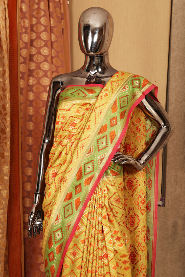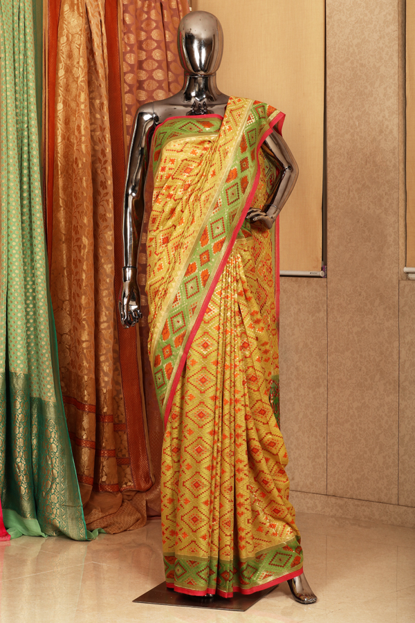 Bright mustard tussar silk saree