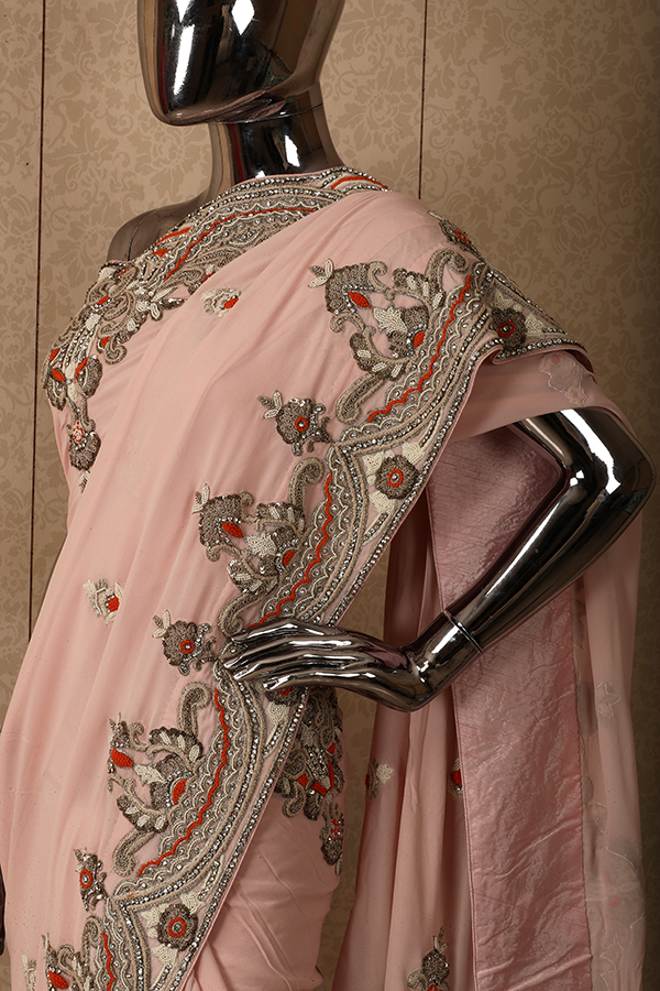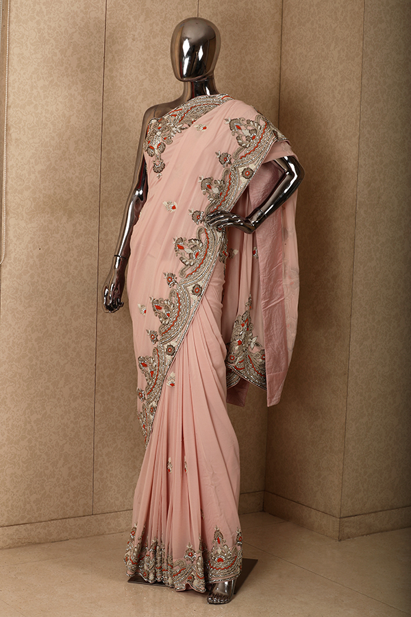 Light pink chiffon saree